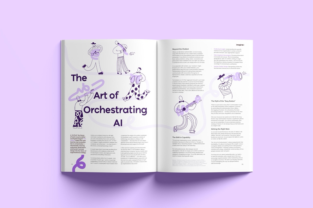 This edition of Imagine magazine, Accelerating Innovation, leans into that transformation, exploring the intersection where AI meets L&D — and the evolving role of humans within this new learning ecosystem.